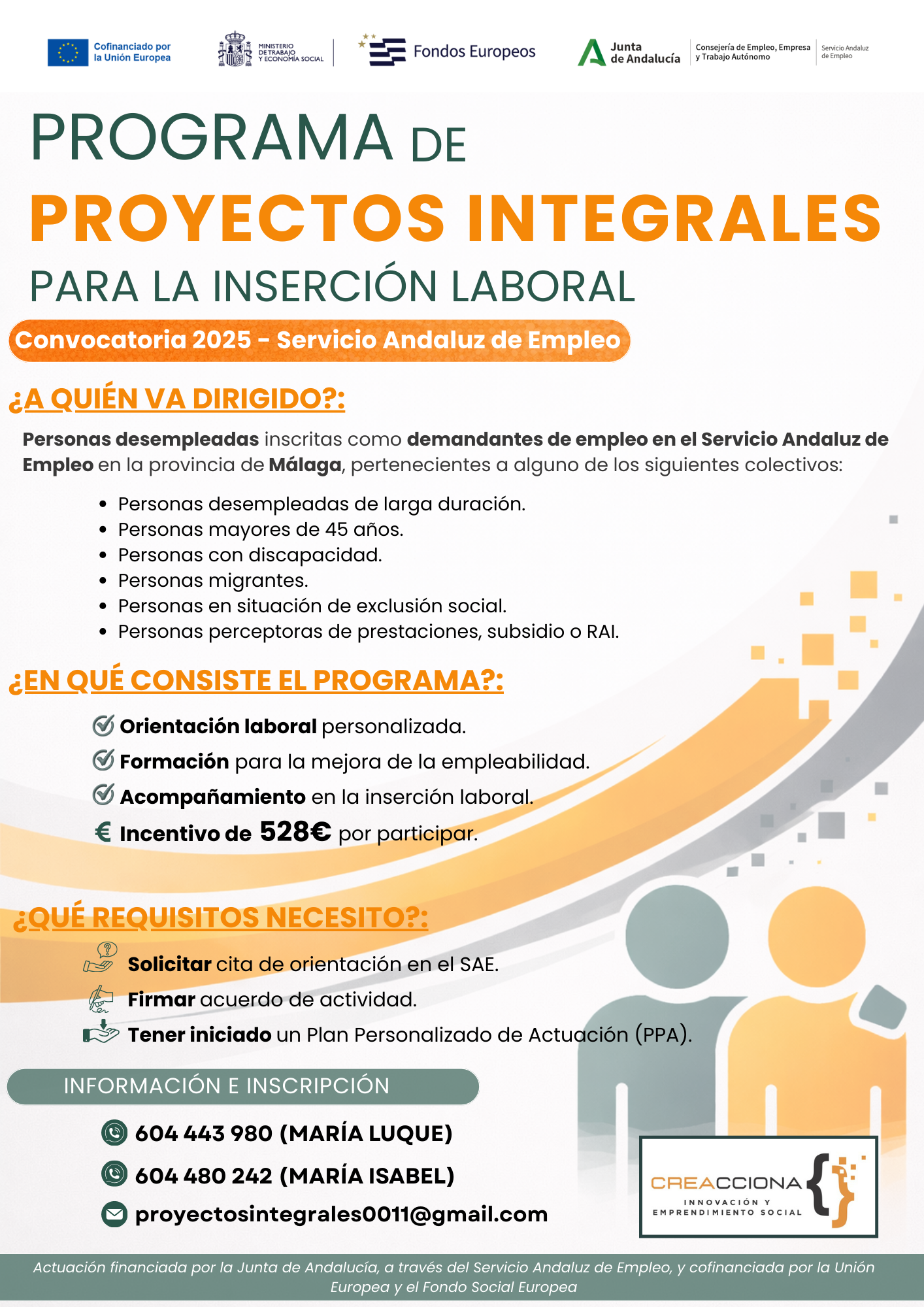 PROGRAMA DE PROYECTOS INTEGRALES PARA LA INSERCIÓN LABORAL PARA + 52 AÑOS